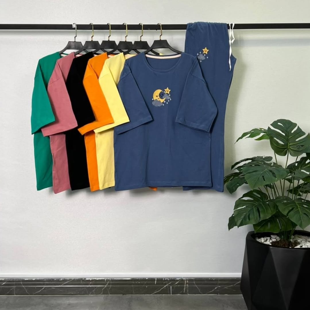 ست لانگ و شلوار بگ پنبه ابر خوابالو