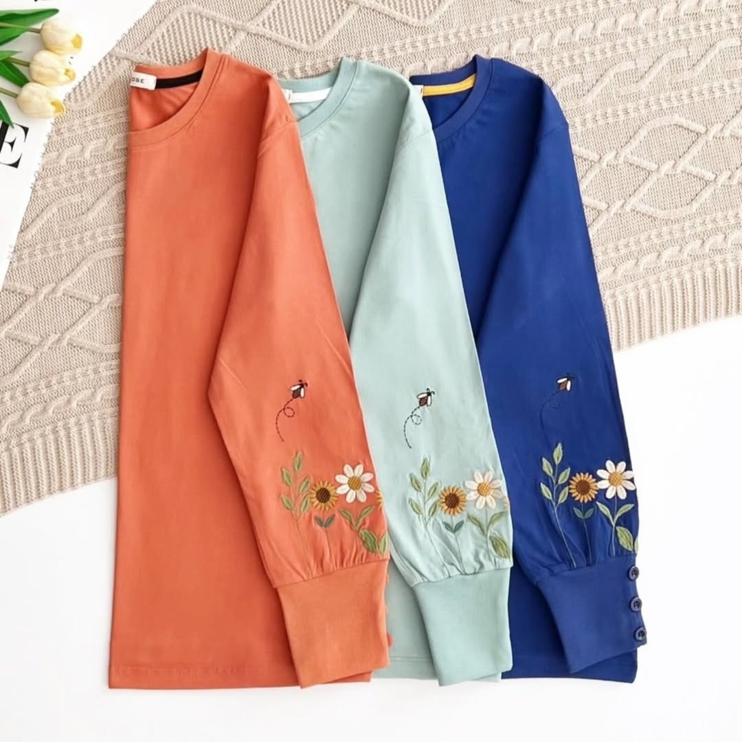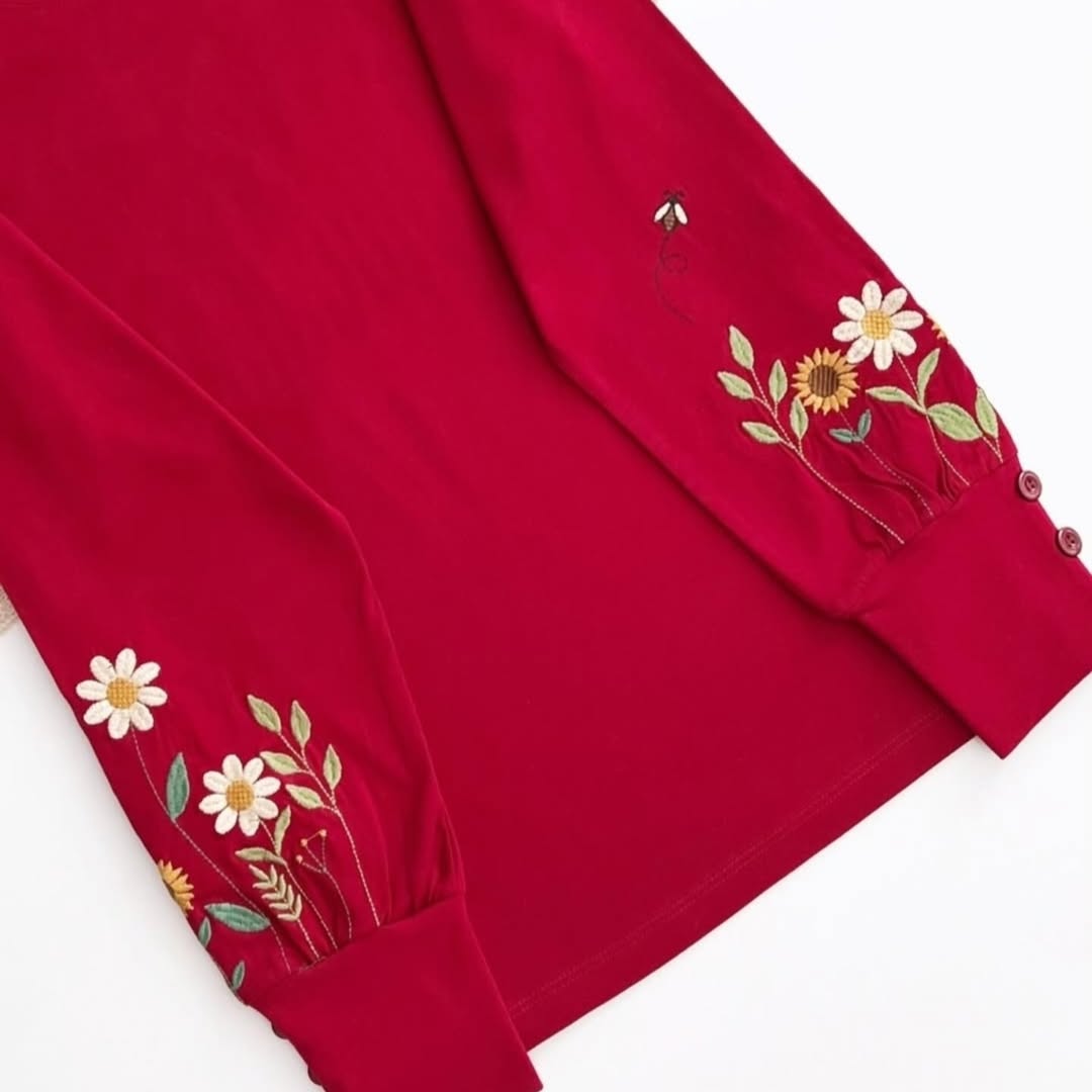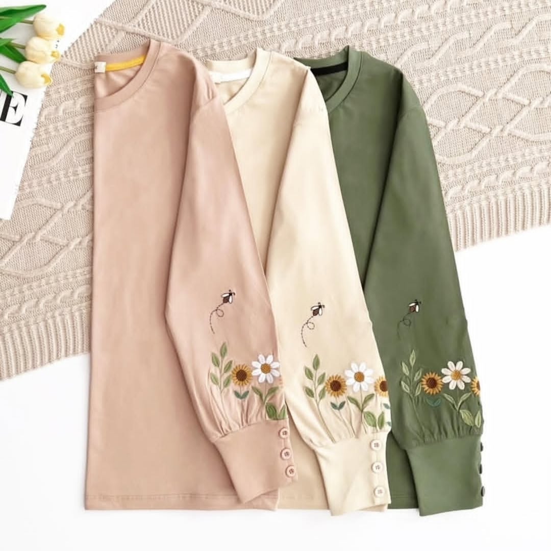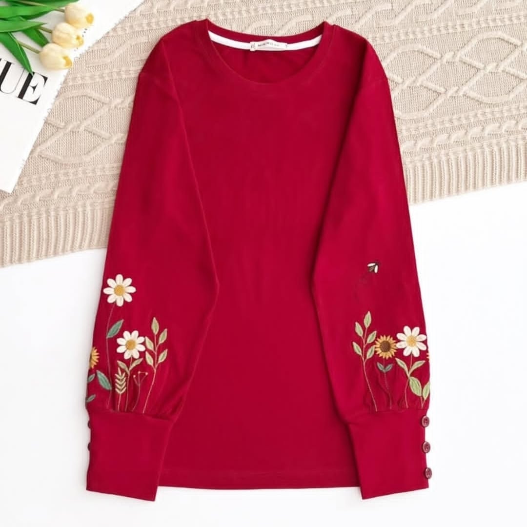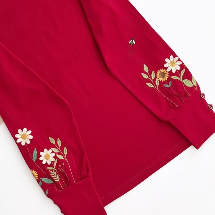 بلوز گلدوزی آستین سه دکمه
