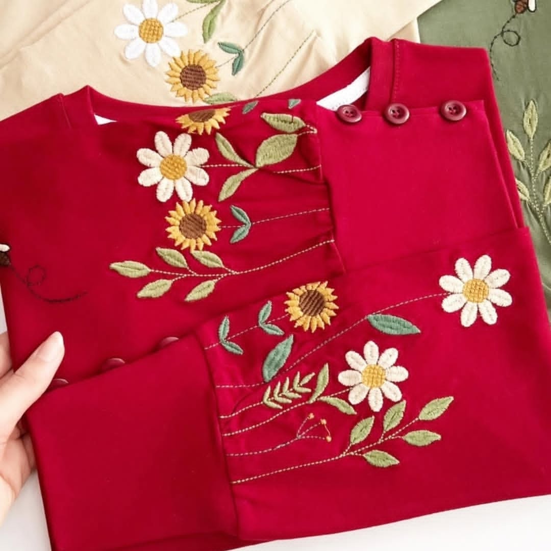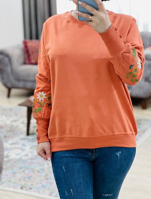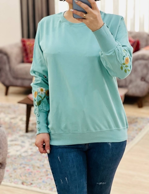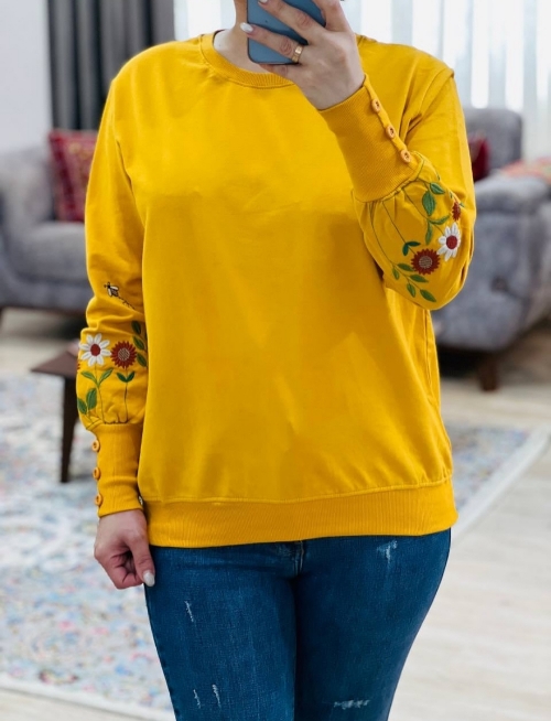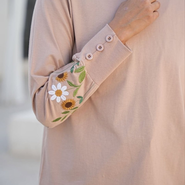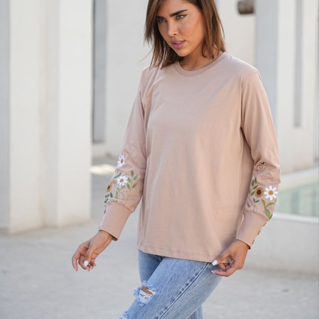با گلهای گلدوزی شده روی سر آستین
