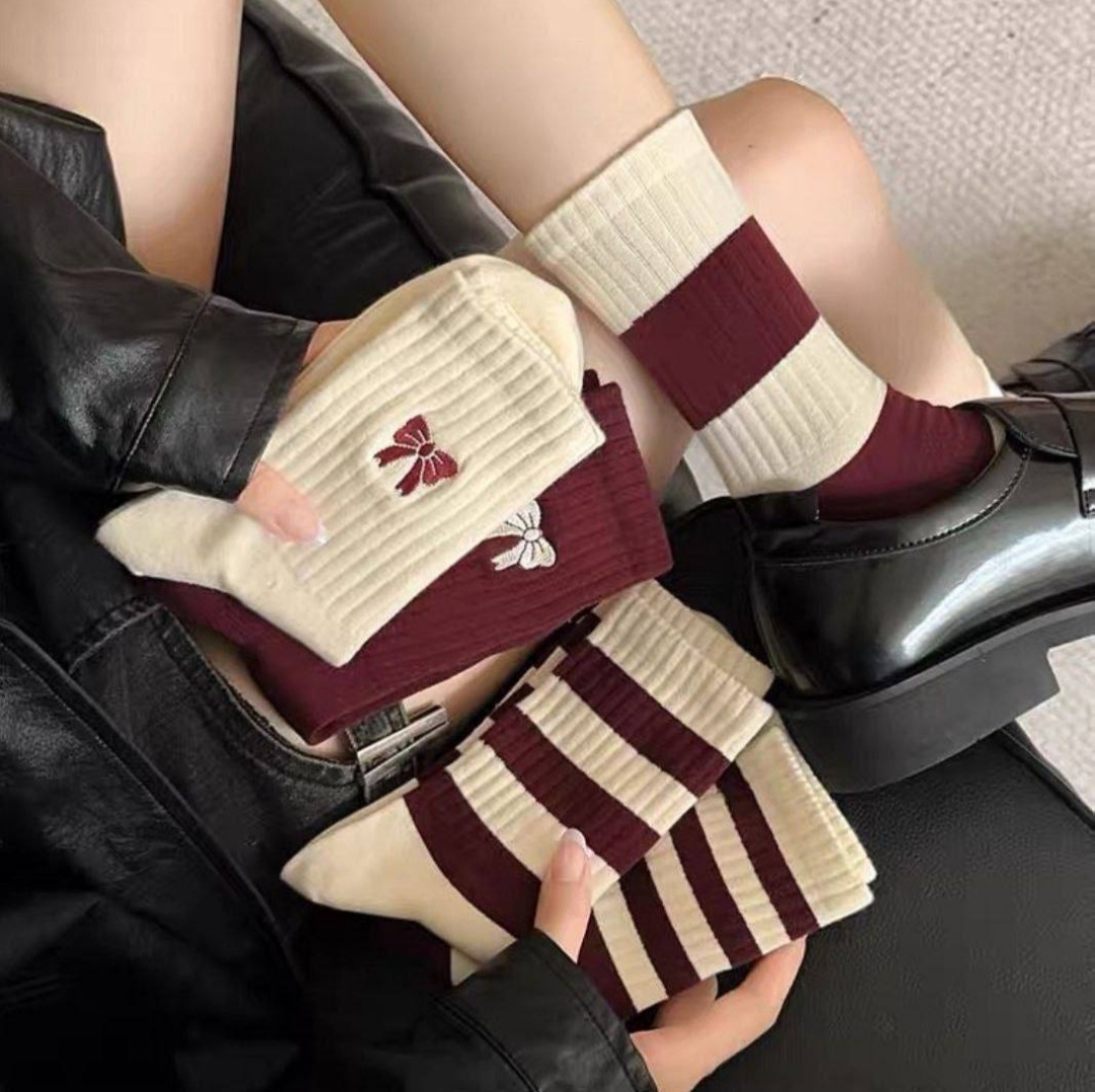 جوراب ساقدار پاپیون زرشکی زنانه یه انتخاب عالی برای فصل پاییز و زمستون جنس پنبه فریسایز۳۶ـ۴۱ فروشگاه پوشاک ژانتی