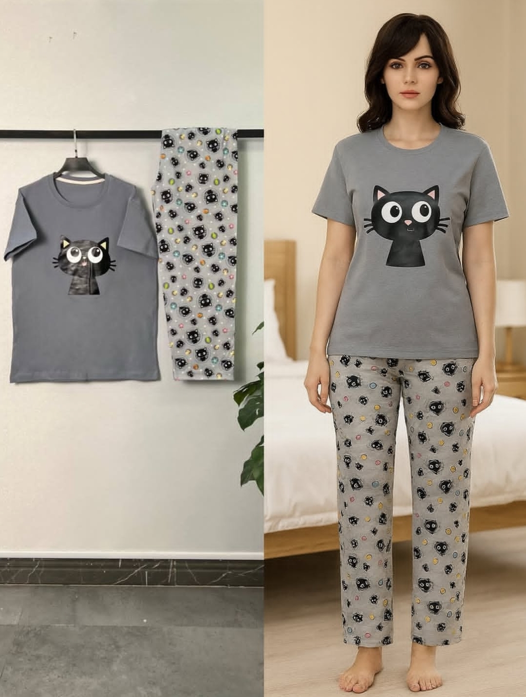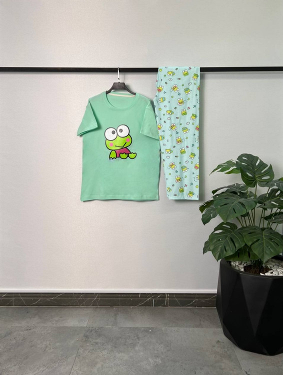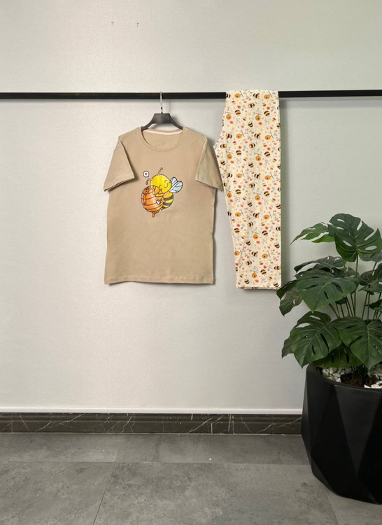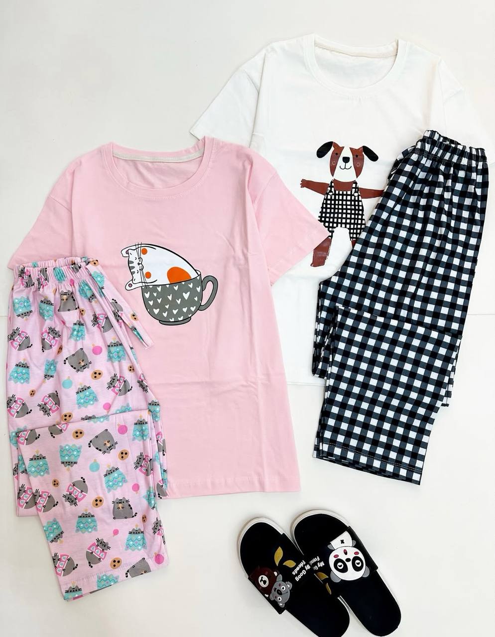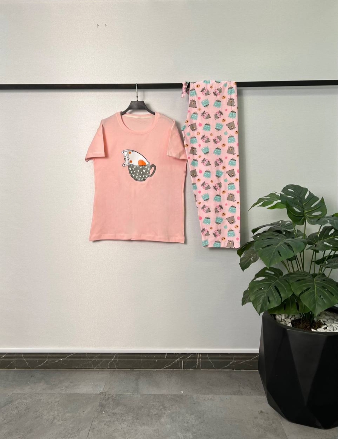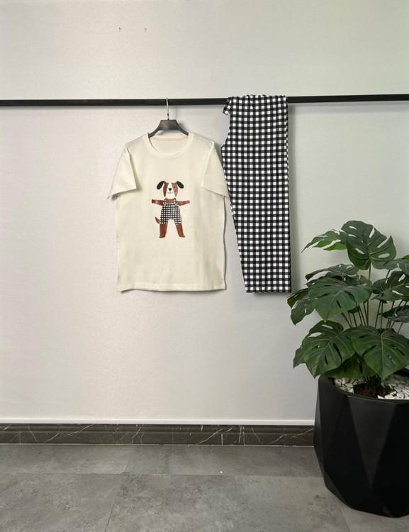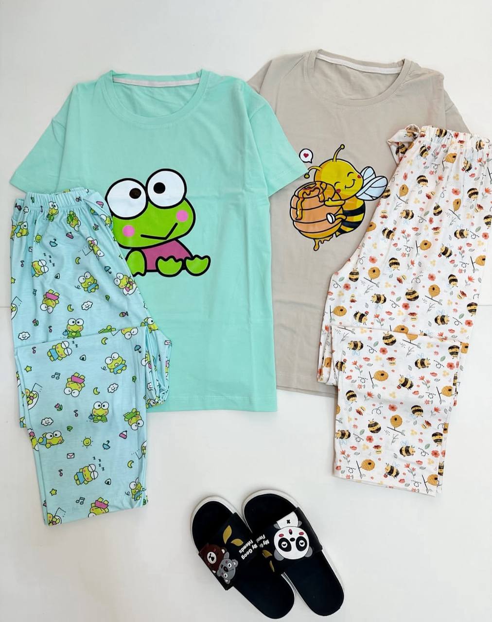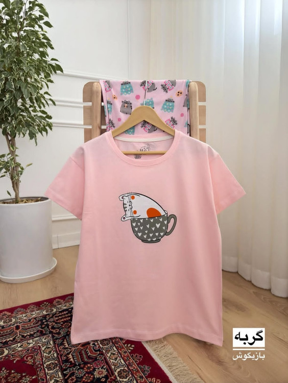ست تیشرت شلوار پنبه زنانه عروسکی چاپی