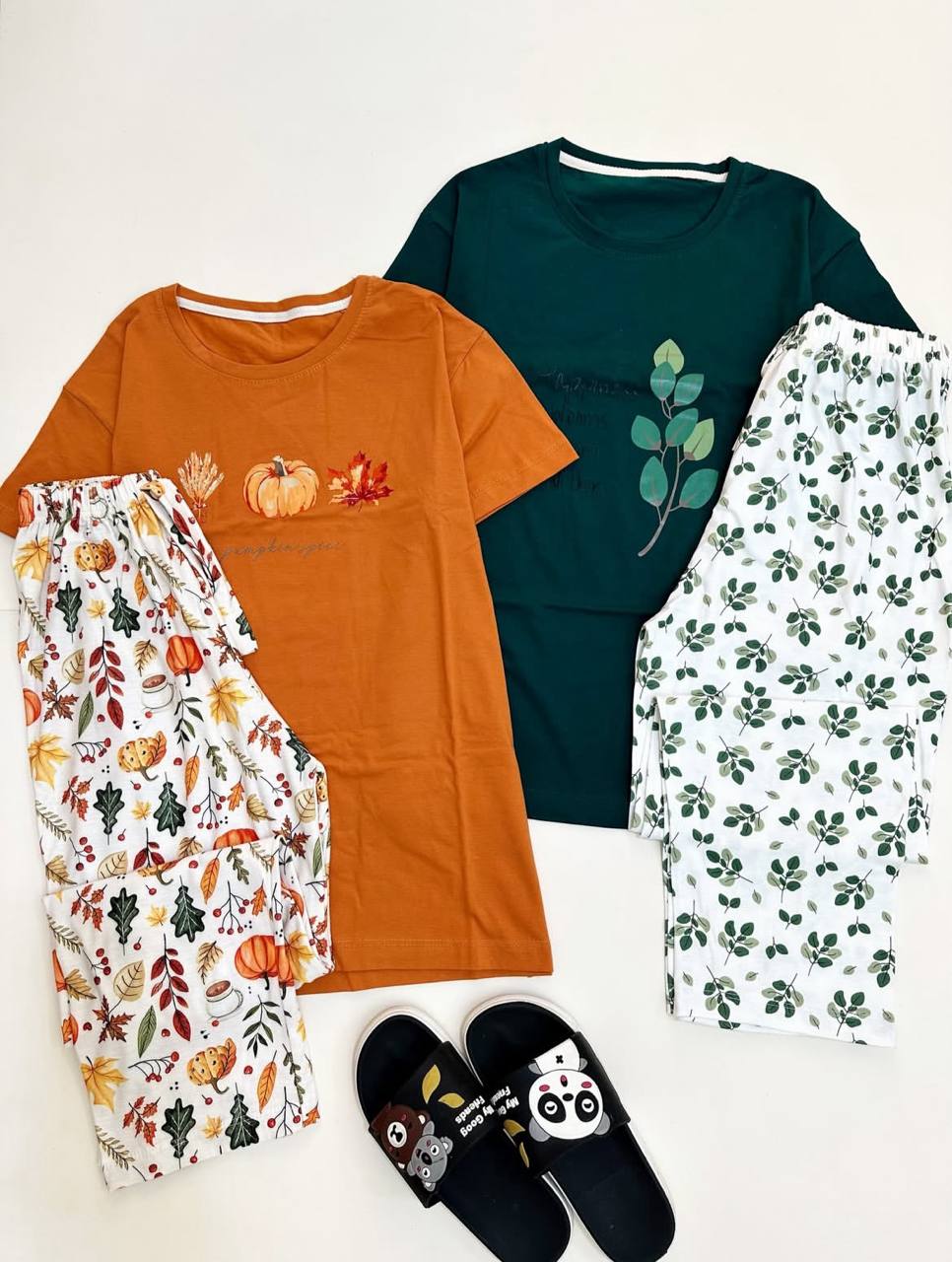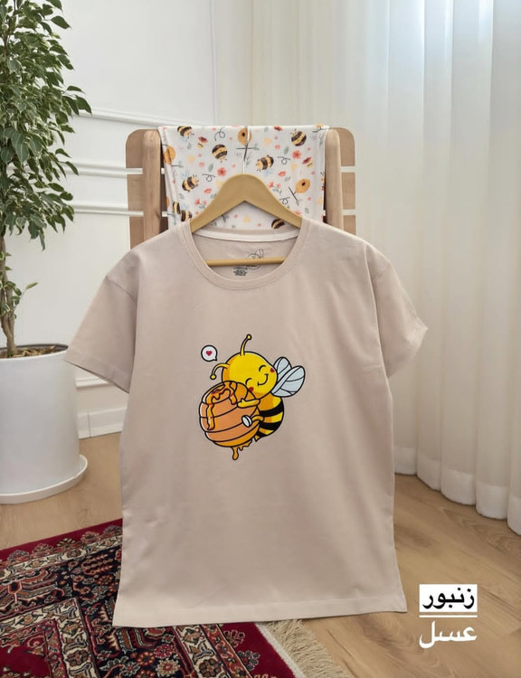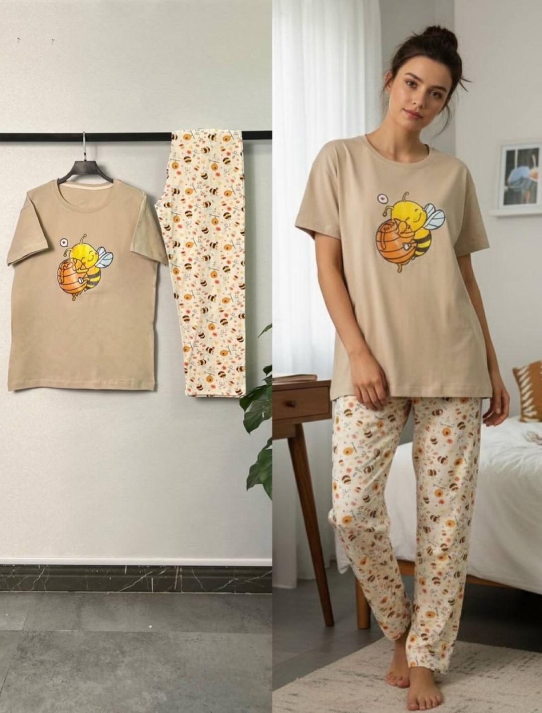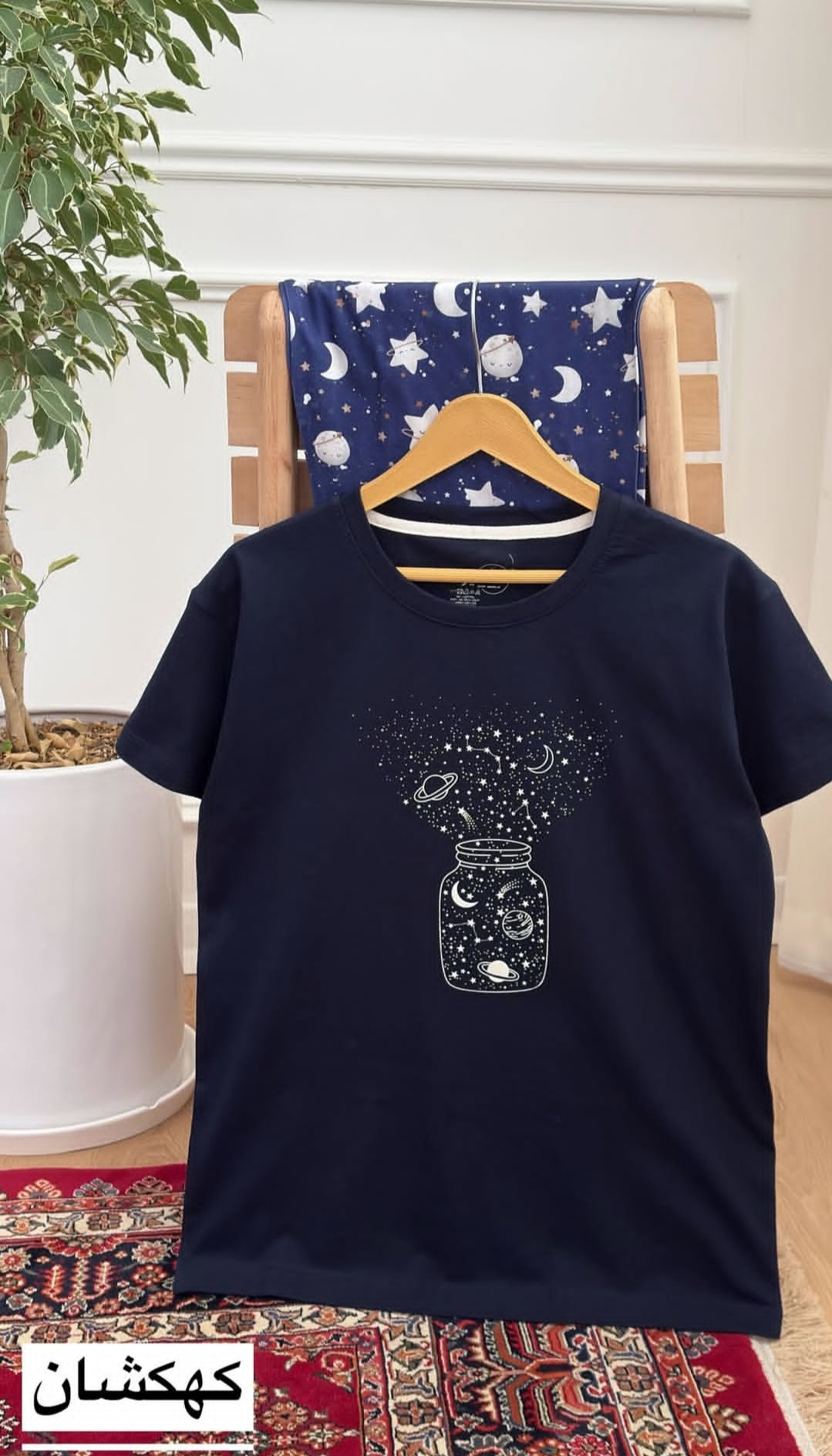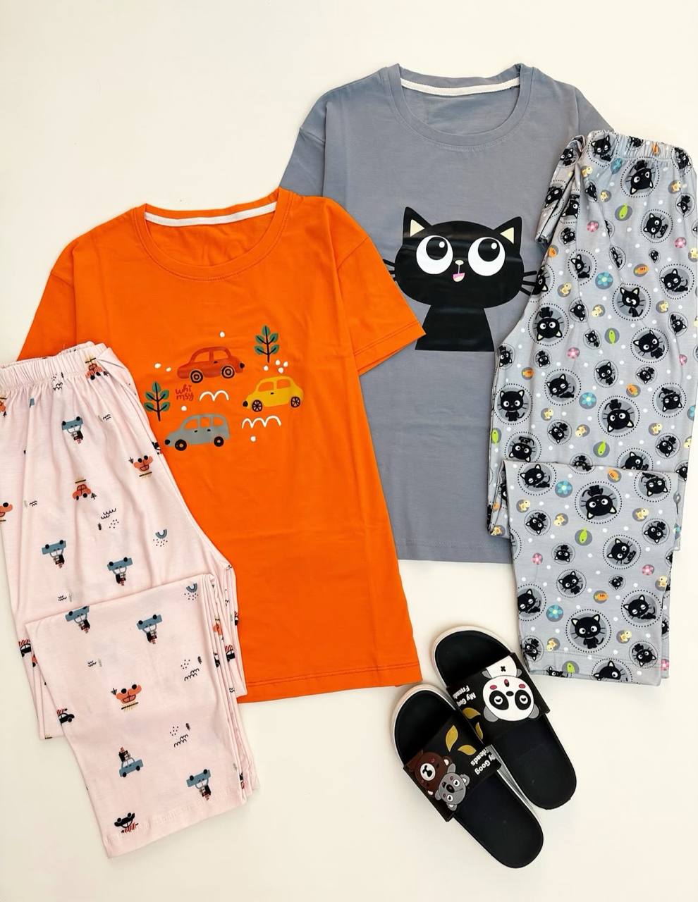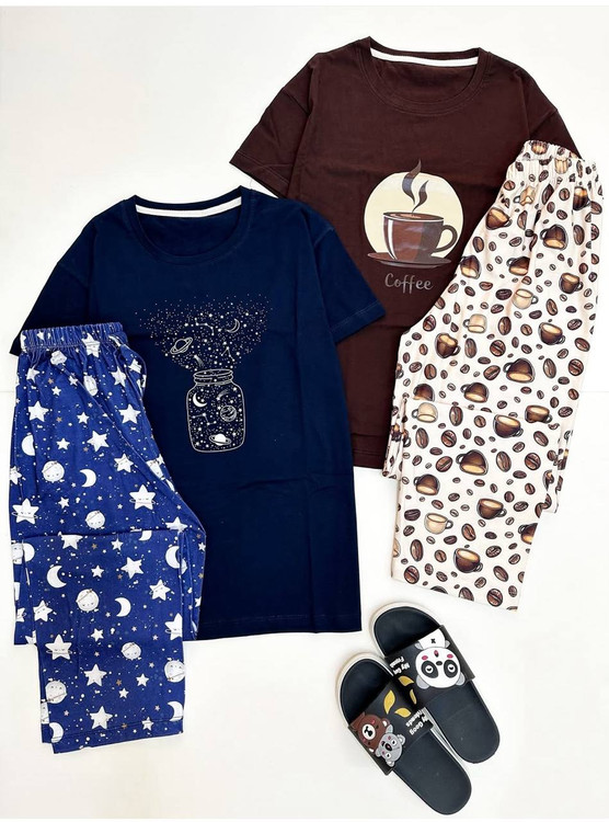 ست تیشرت شلوار پنبه زنانه عروسکی چاپی