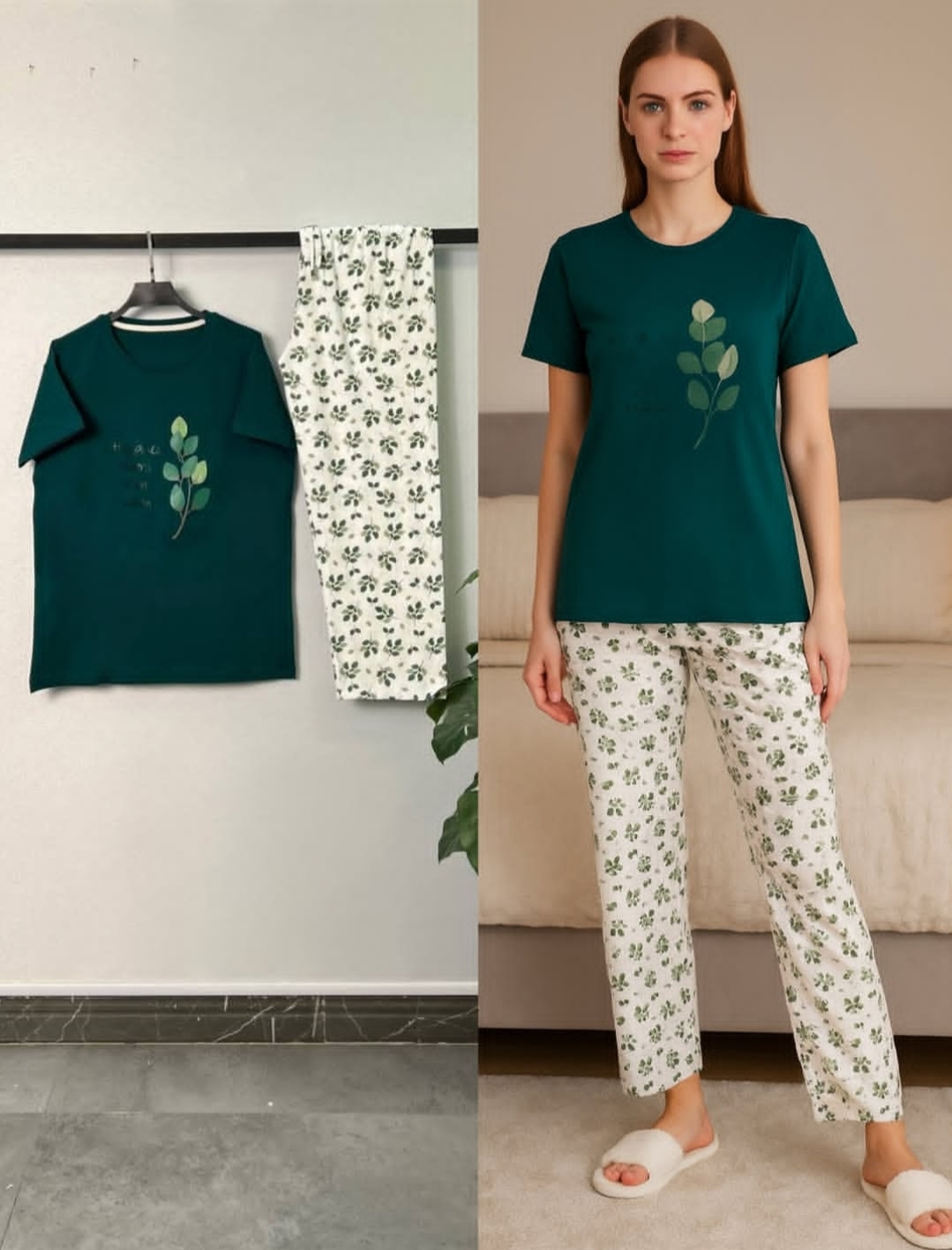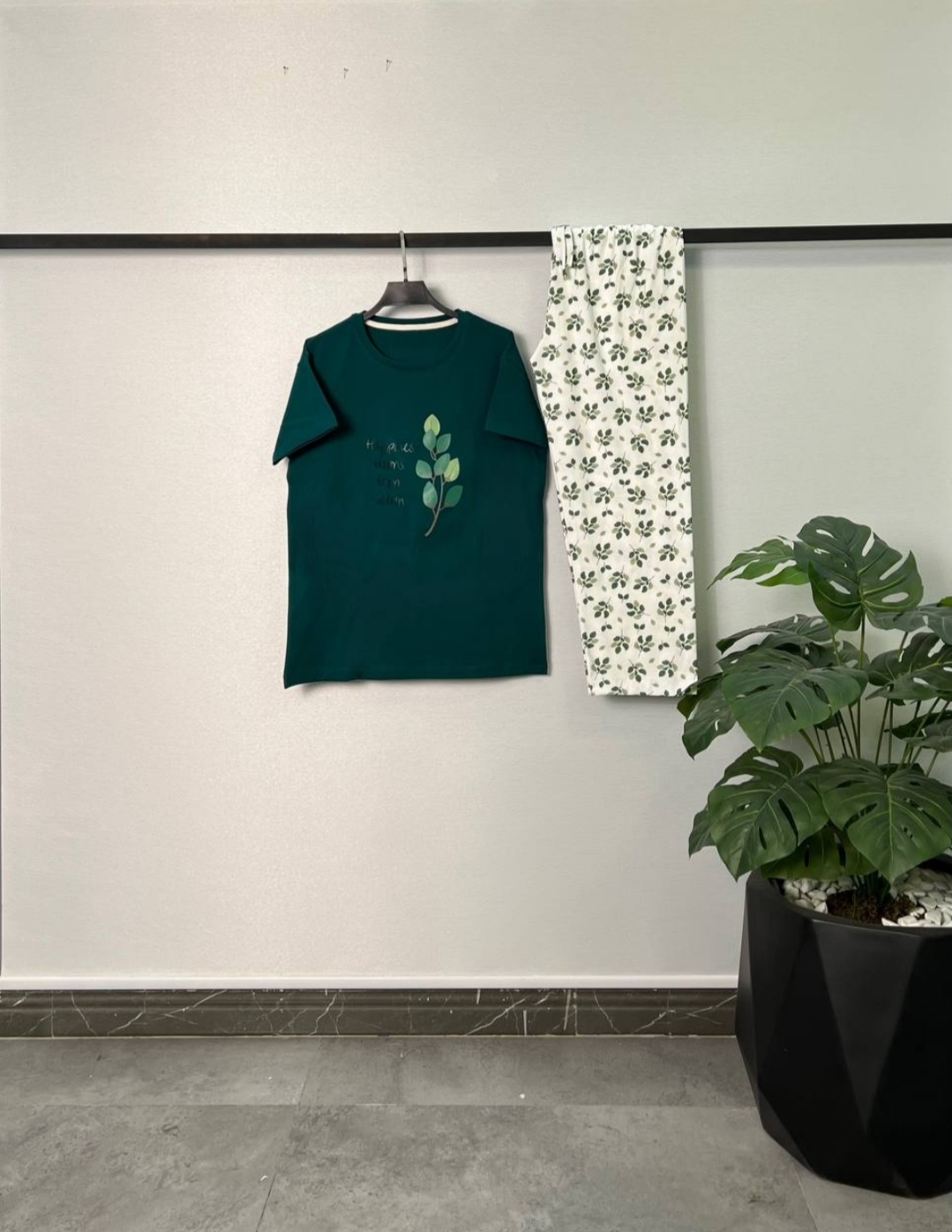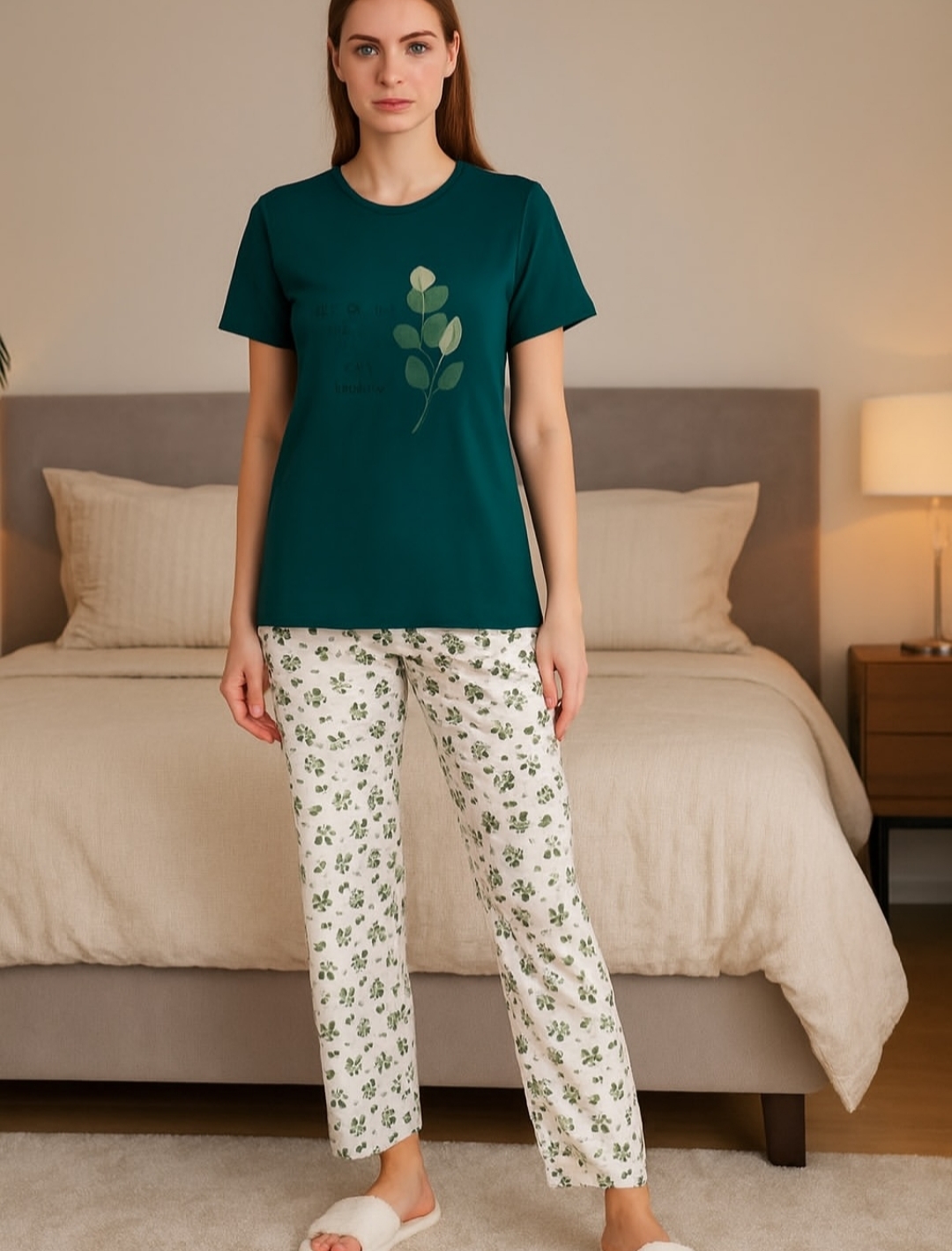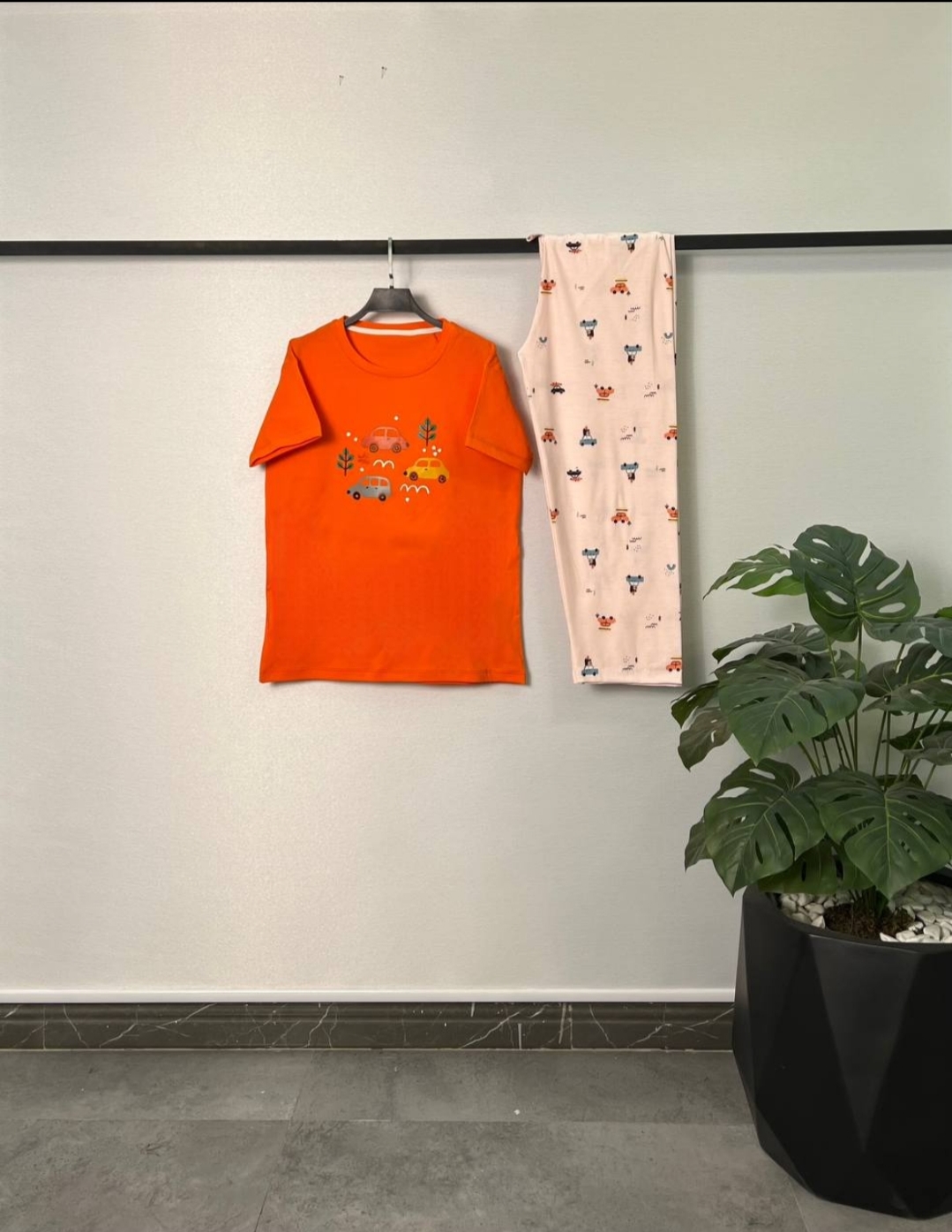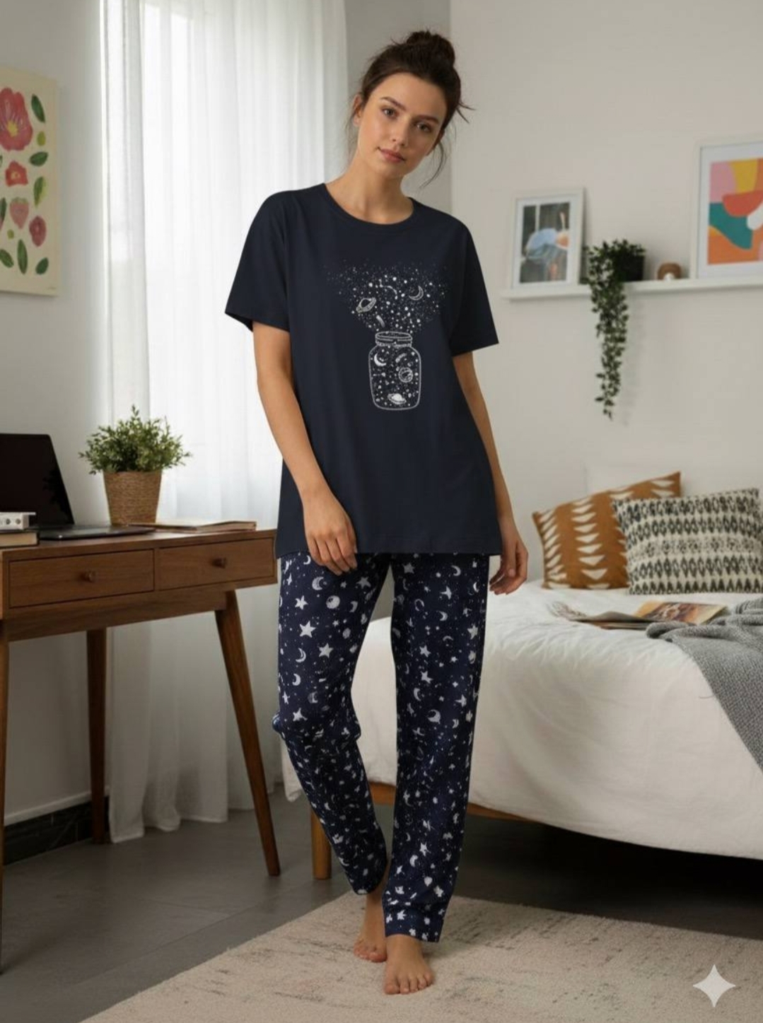 ست تیشرت شلوار پنبه زنانه عروسکی چاپی