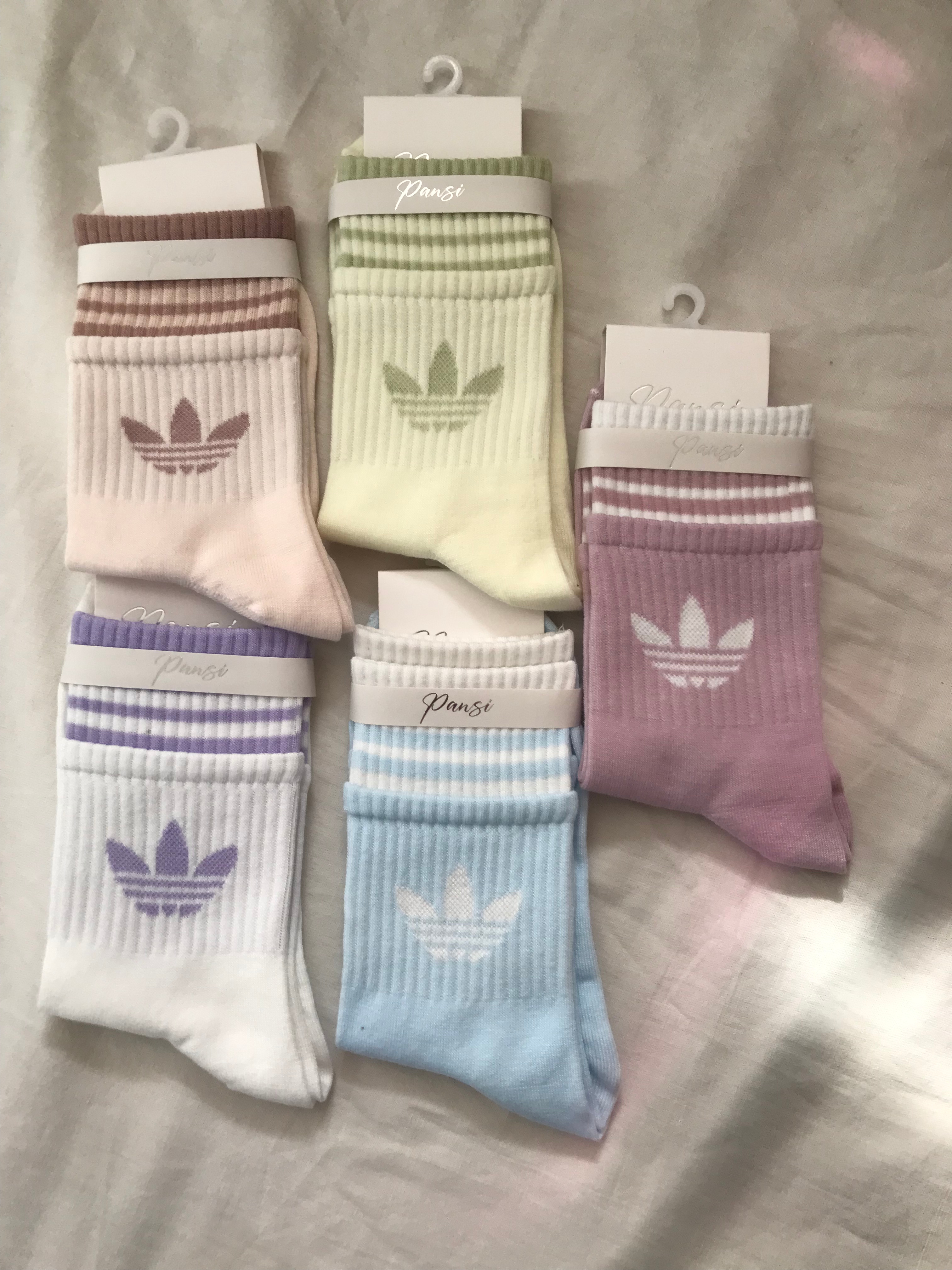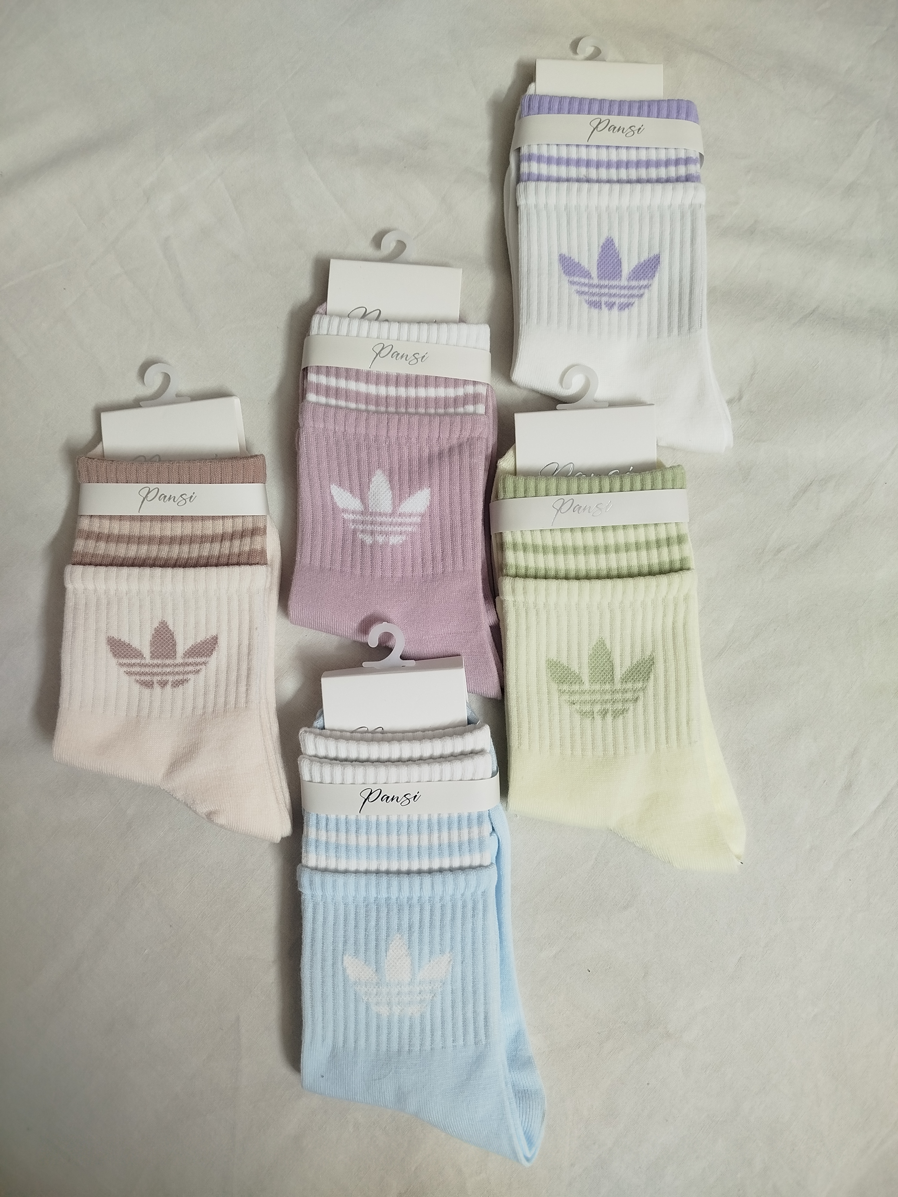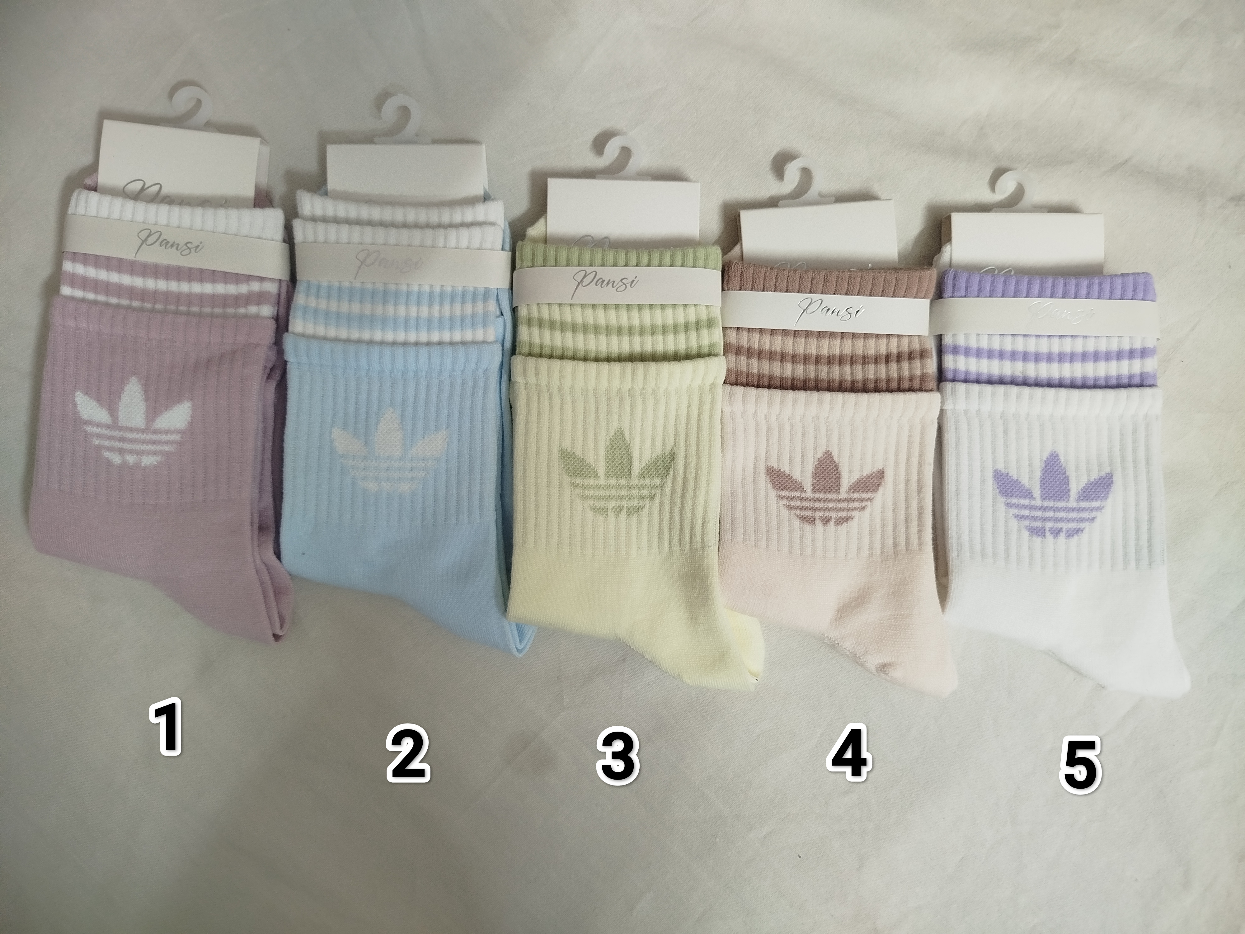 جوراب نیم ساق زنانه وارداتی کش دوبل طرح آدیداس سایز ۳۶ تا ۴۱ مناسب ۸ سال به بالا سفید،کرم،بنفش،سبز،آبی