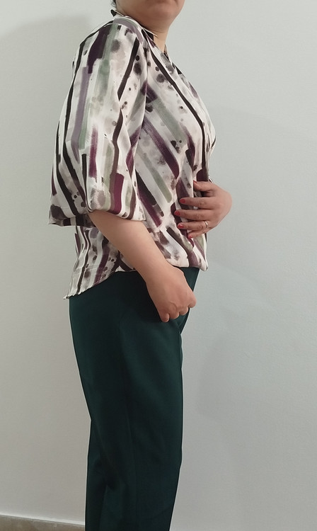 سرشانه ۳۹-قد جلوی کار ۵۹-بلندی آستین از سرشانه ۴۵-عرض سینه ۵۱