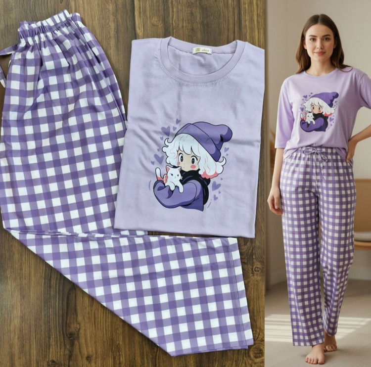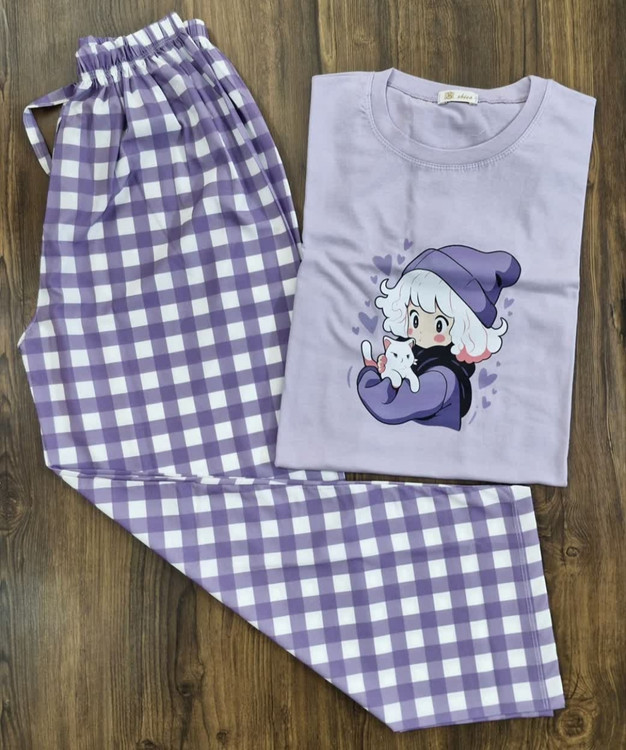 دختر بنفش و گربه