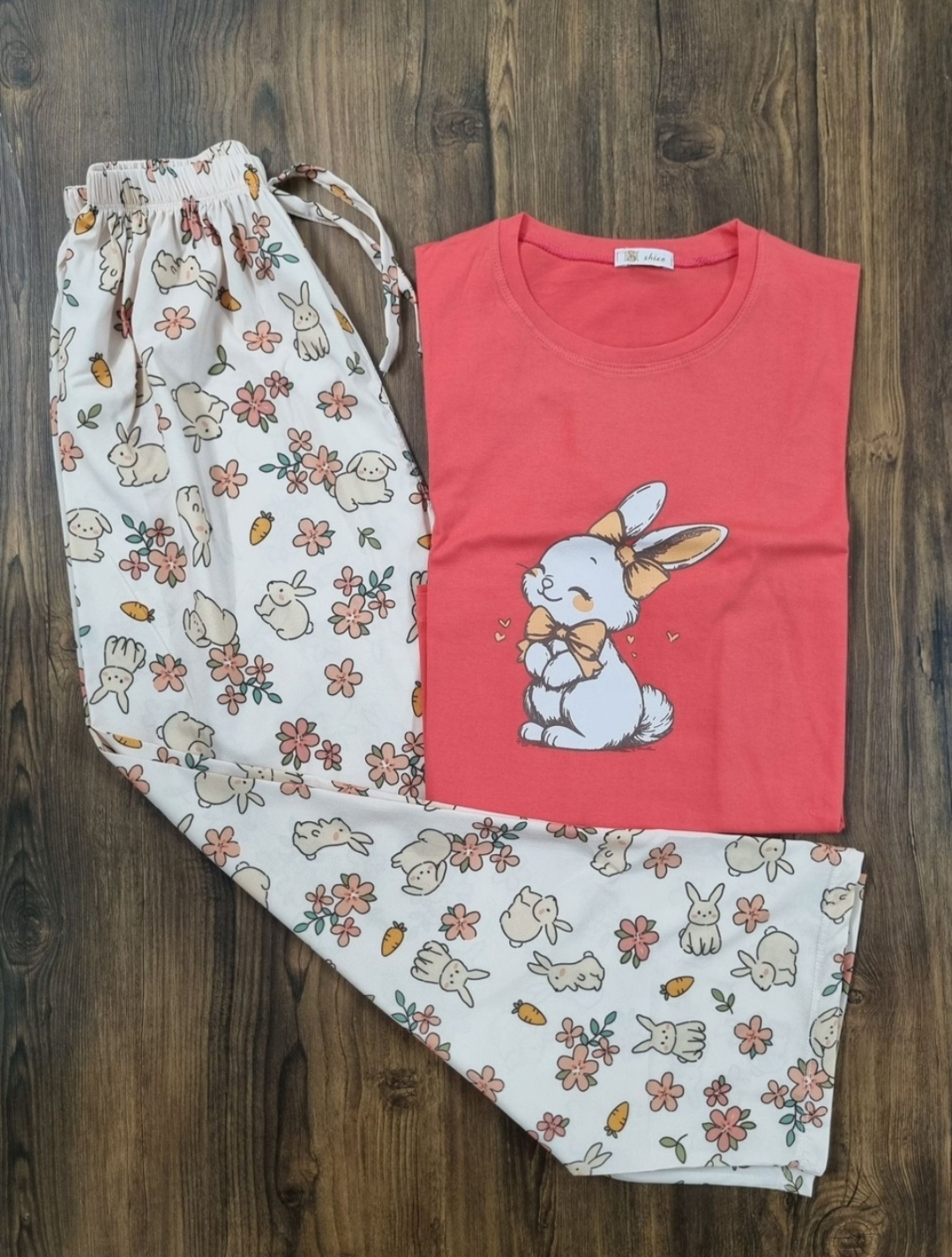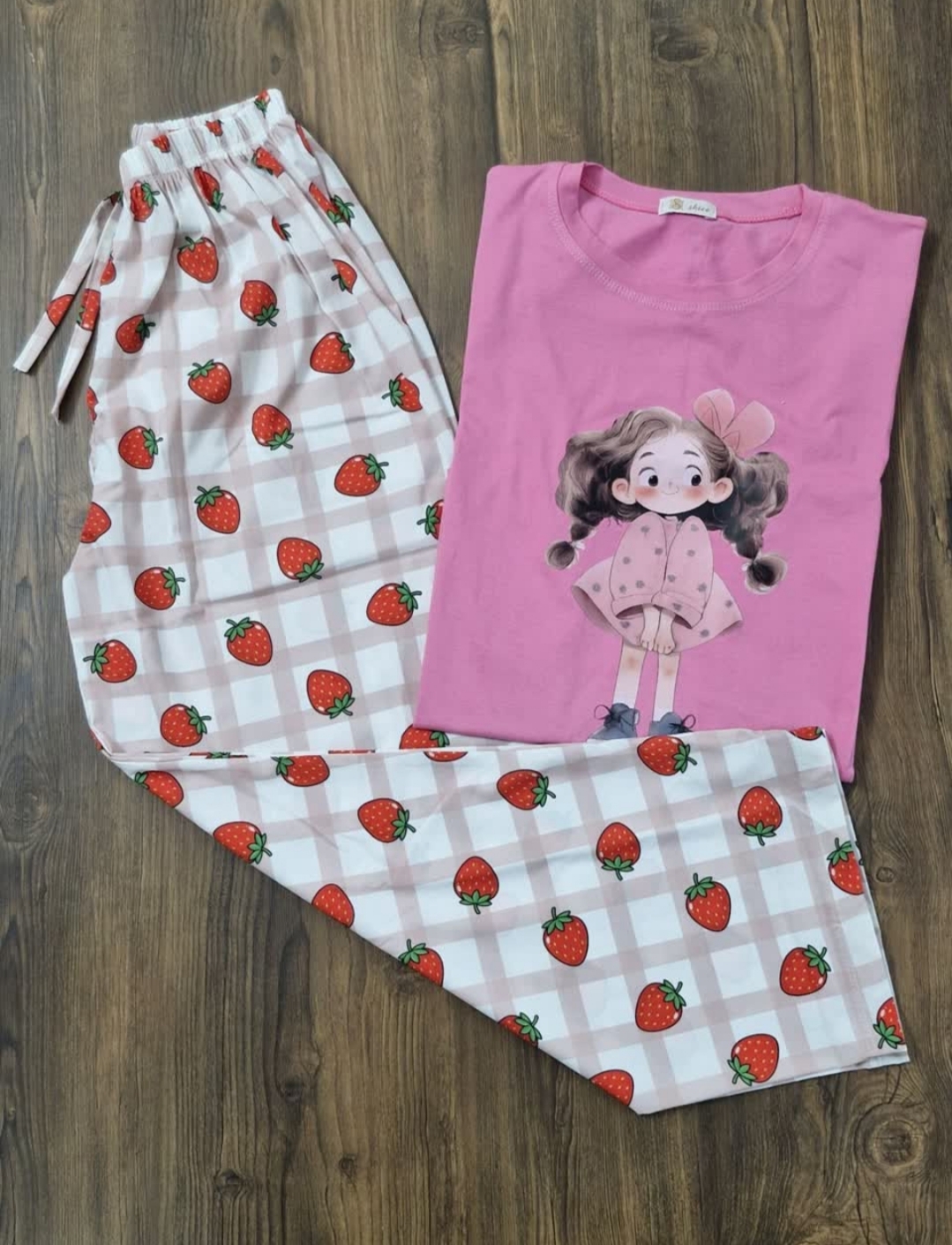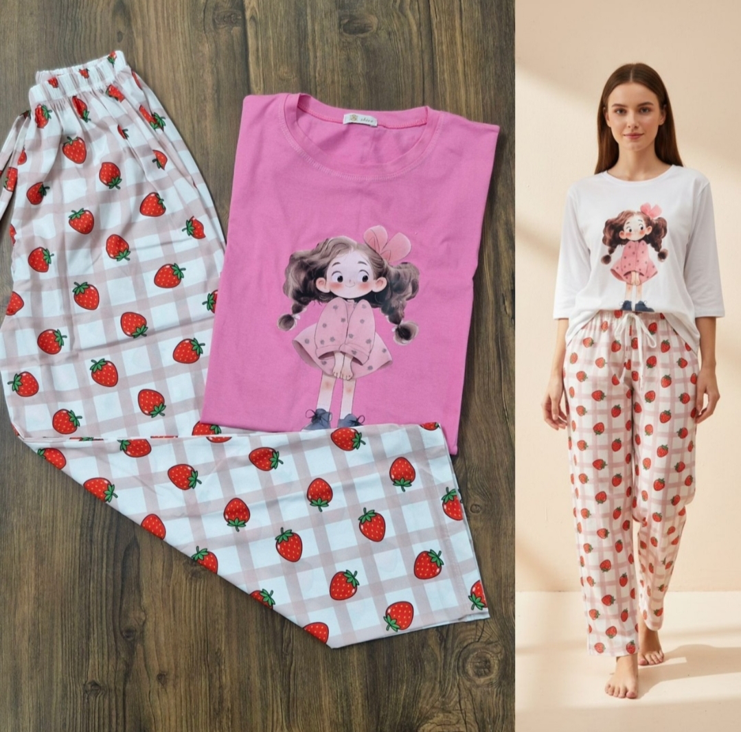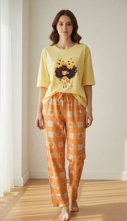 ست تیشرت آستین سه ربع و شلوار بگ زنانه عروسکی