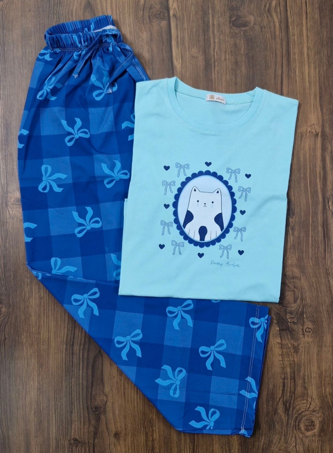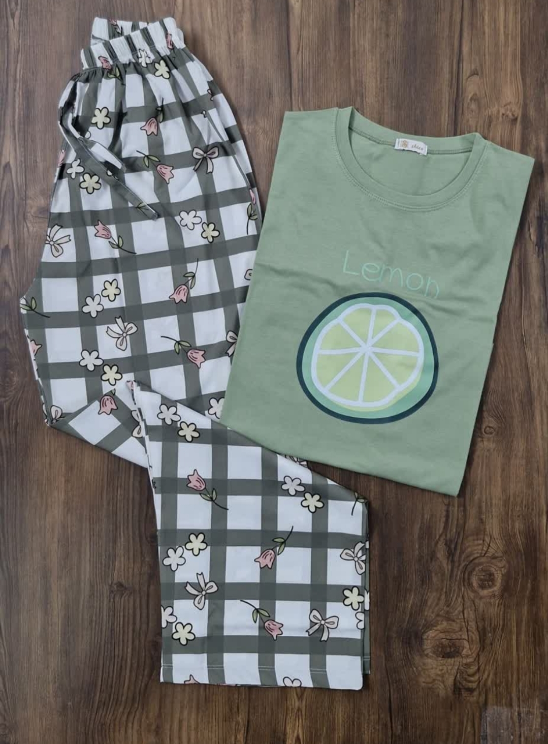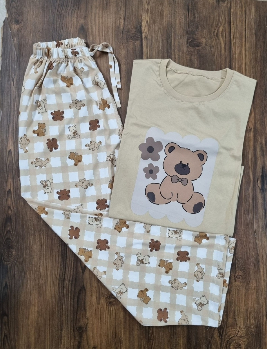 ست تیشرت آستین سه ربع و شلوار بگ زنانه عروسکی